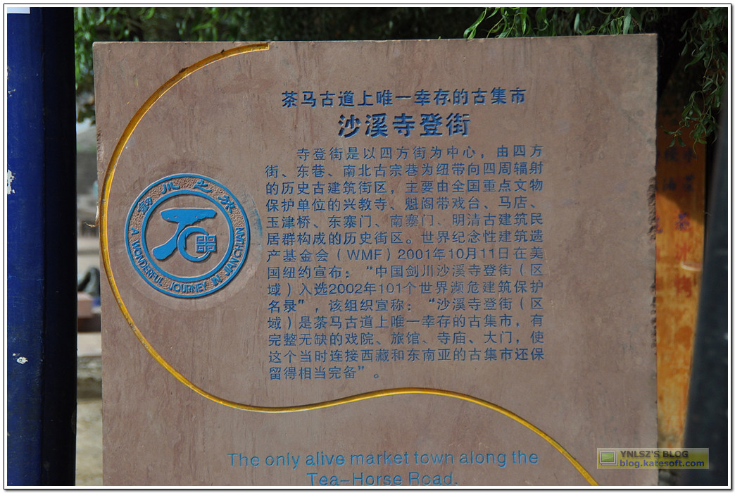 寺登四方街是沙溪的灵魂与核心,是沙溪商贸交易的地方。它位于沙溪坝子中央螯峰山熬头位置,依山傍水,是一个地理位置 极佳的风水宝地,是一个集寺庙、古戏台、商铺、马店,开阔的红砂石板街面,百年古树、古巷道、寨门于一身、功能齐备的千年古集市。[img src=https://blog.katesoft.com/wp-content/flagallery/shaxi_guzheng/thumbs/thumbs_dsc_3670.jpg]60寺登四方街